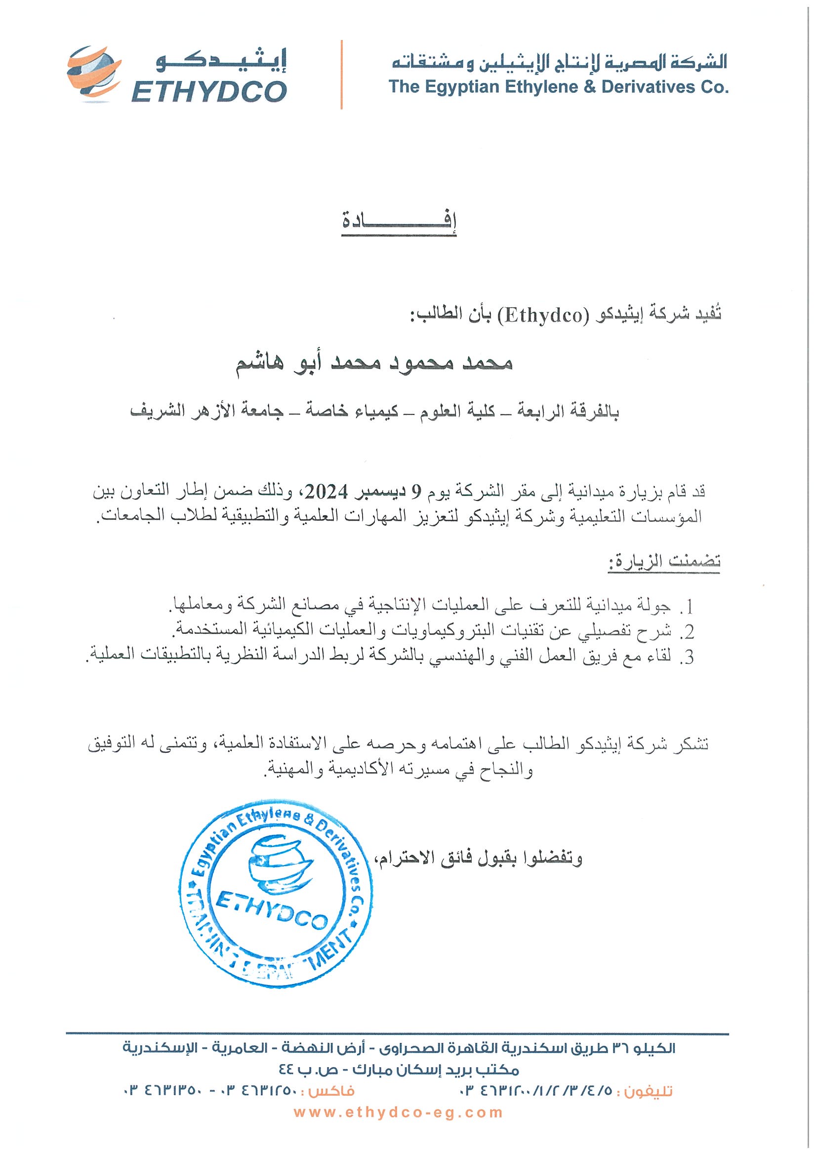 I hold a B.Sc. in Chemistry from Al-Azhar University, with a solid background in both analytical and organic chemistry. My academic journey has equipped me with strong laboratory skills, critical thinking, and a methodical approach to addressing complex challenges.
