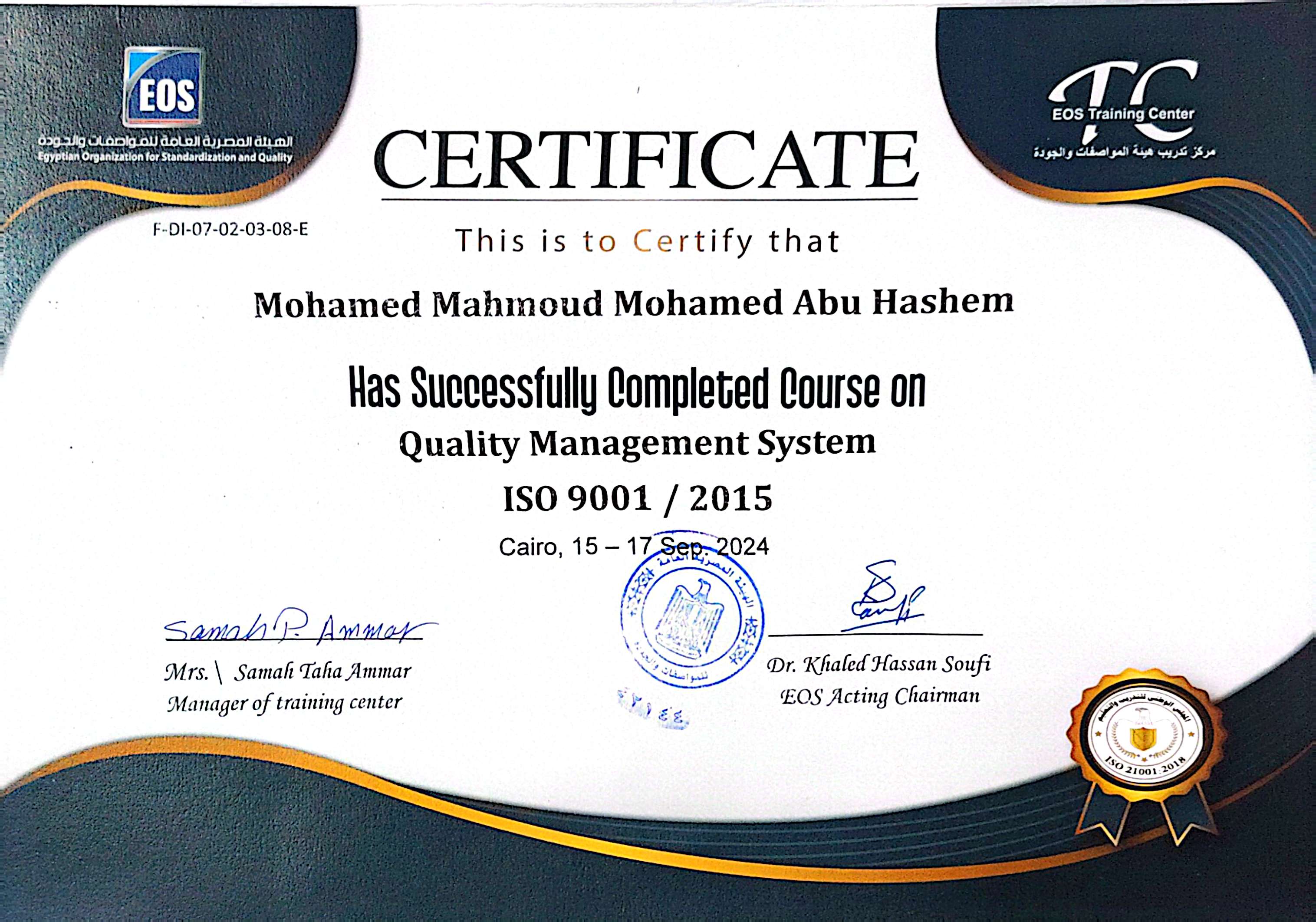 earned the fundamentals of the ISO 9001 QMS, including documentation and standard operating procedures.